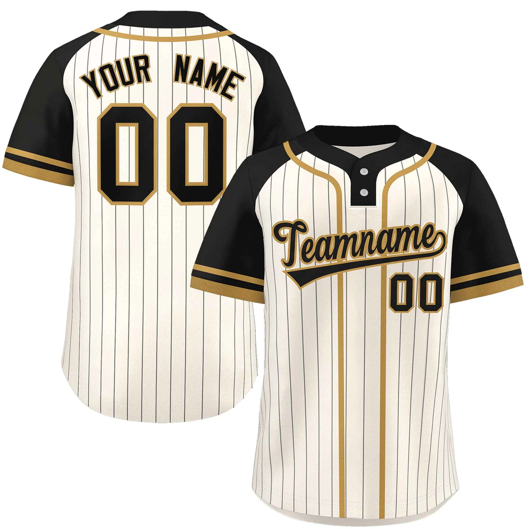 Custom Cream Black-Old Gold Stripe Fashion Raglan Sleeves Authentic Two-Button Softball Jersey
