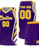 Custom Purple Gold Diamond Pattern Side Slash Sports Uniform Basketball Jersey
